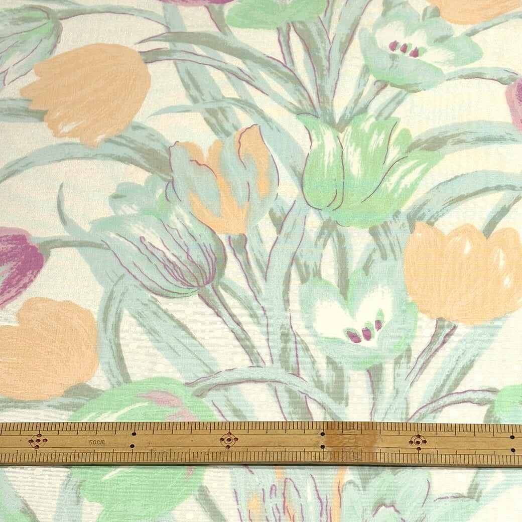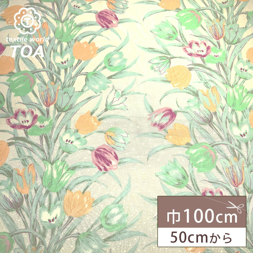 生地 【 グログラン チューリッププリント クリーム 】 グログラン生地 プリント生地 100cm巾 花柄 大柄デザイン 水彩画 絵画 ポリエステル アンティーク 帽子 バッグ ワンピース ドレス スカート コート 衣装 インテリ