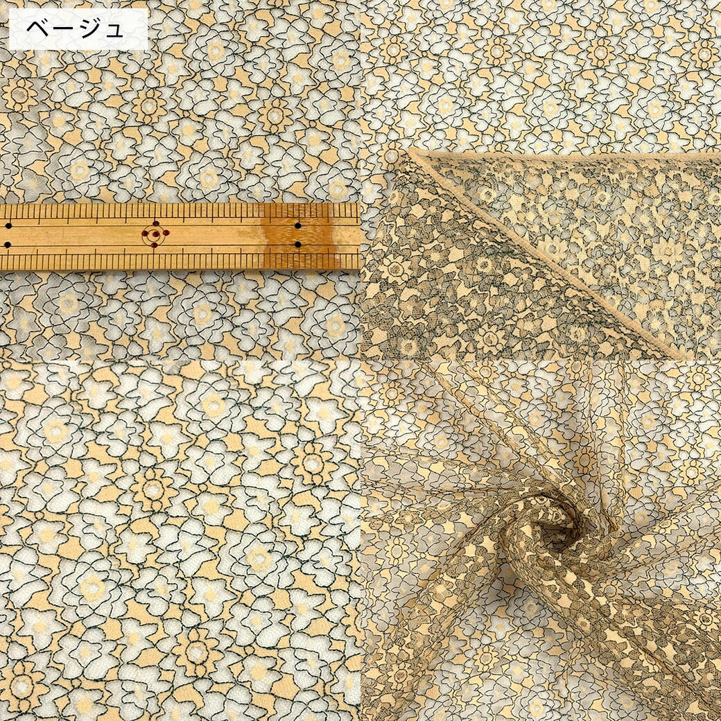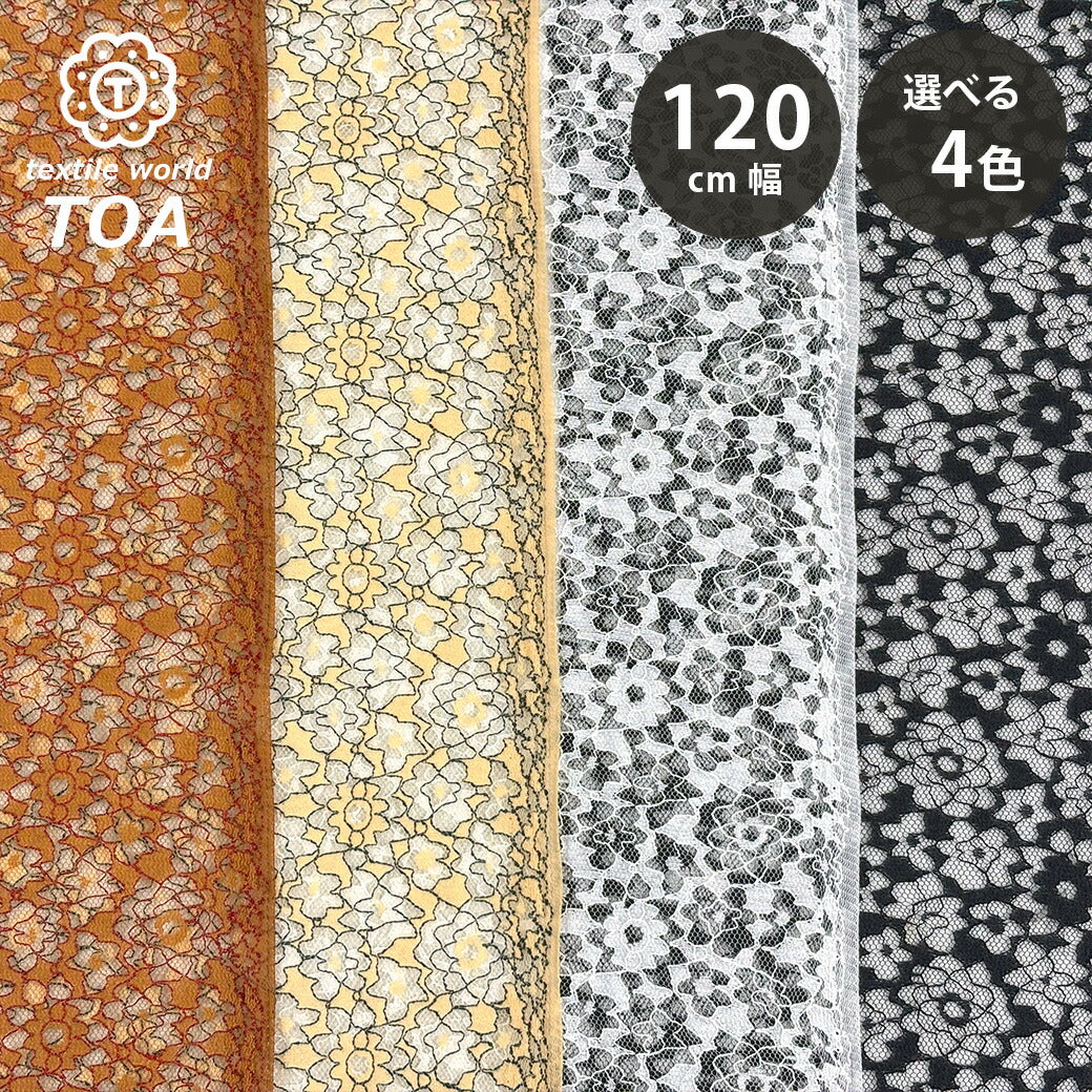 生地 【 ポリエステル100 チュールレース 4色 】 レース レース生地 花柄 植物柄 刺繍 レース刺繍 小花柄 ワンピーズ チュニック スカート カーテン ドレス ブライダル ウェディング コスプレ ドール服 エレガント 可愛い ベール ハンドメイド 手芸 手作り Textile World TOA