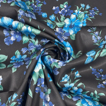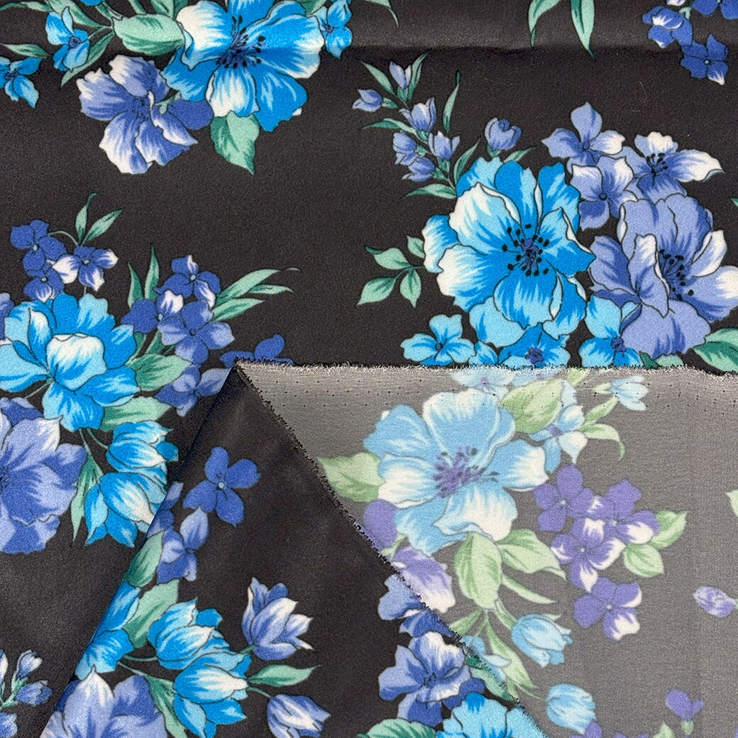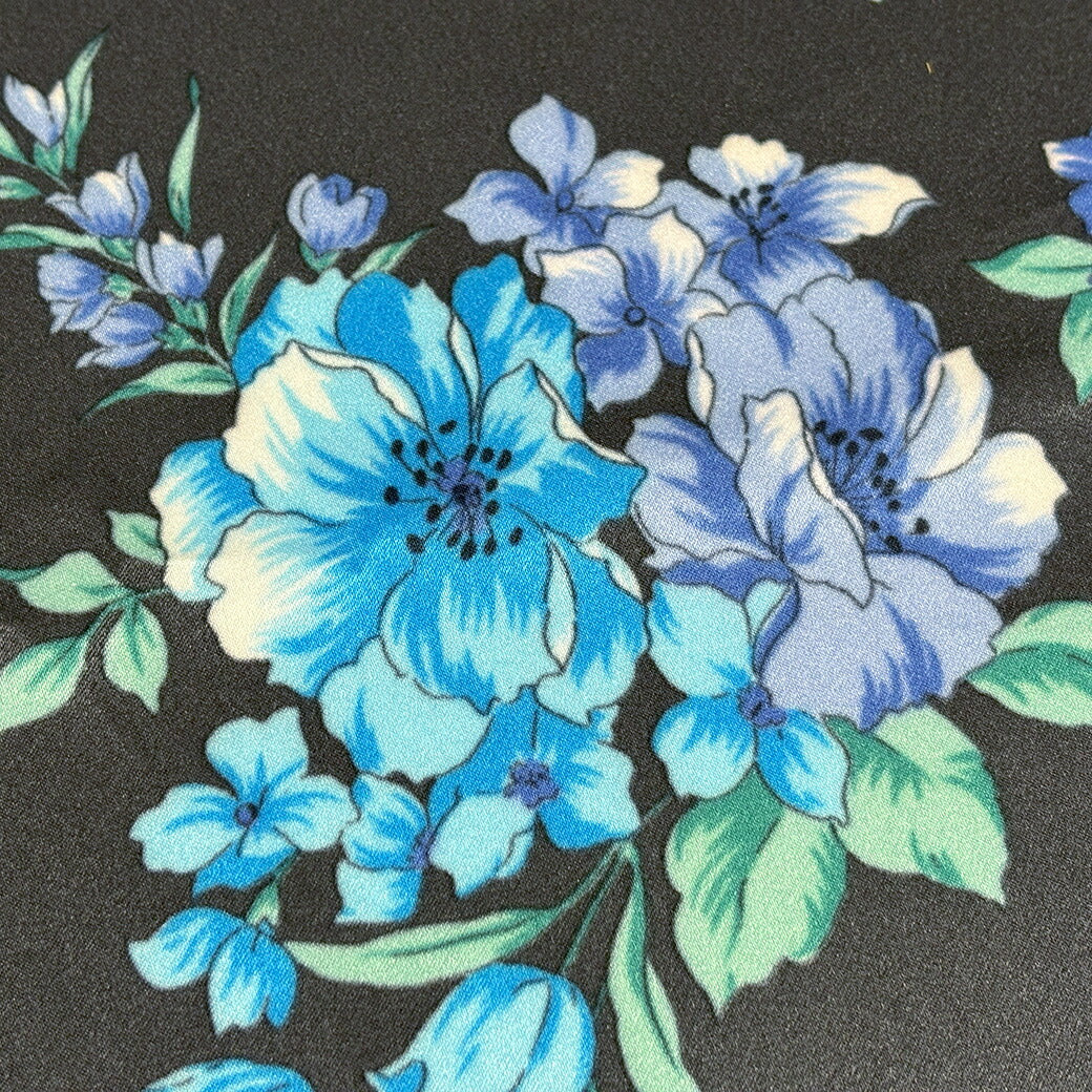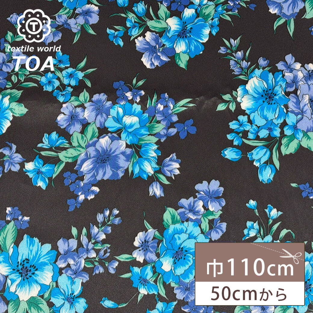 生地 【 ポリエステル フラワー ブルー 】 フラワープリント 花柄 小花柄 植物柄 ボタニカルフラワー 花柄生地 水彩画 絵画 ワンピース ドレス スカート ブラウス 衣装 ダンス衣装 生地 布 布地 上品 華やか 総柄 エ