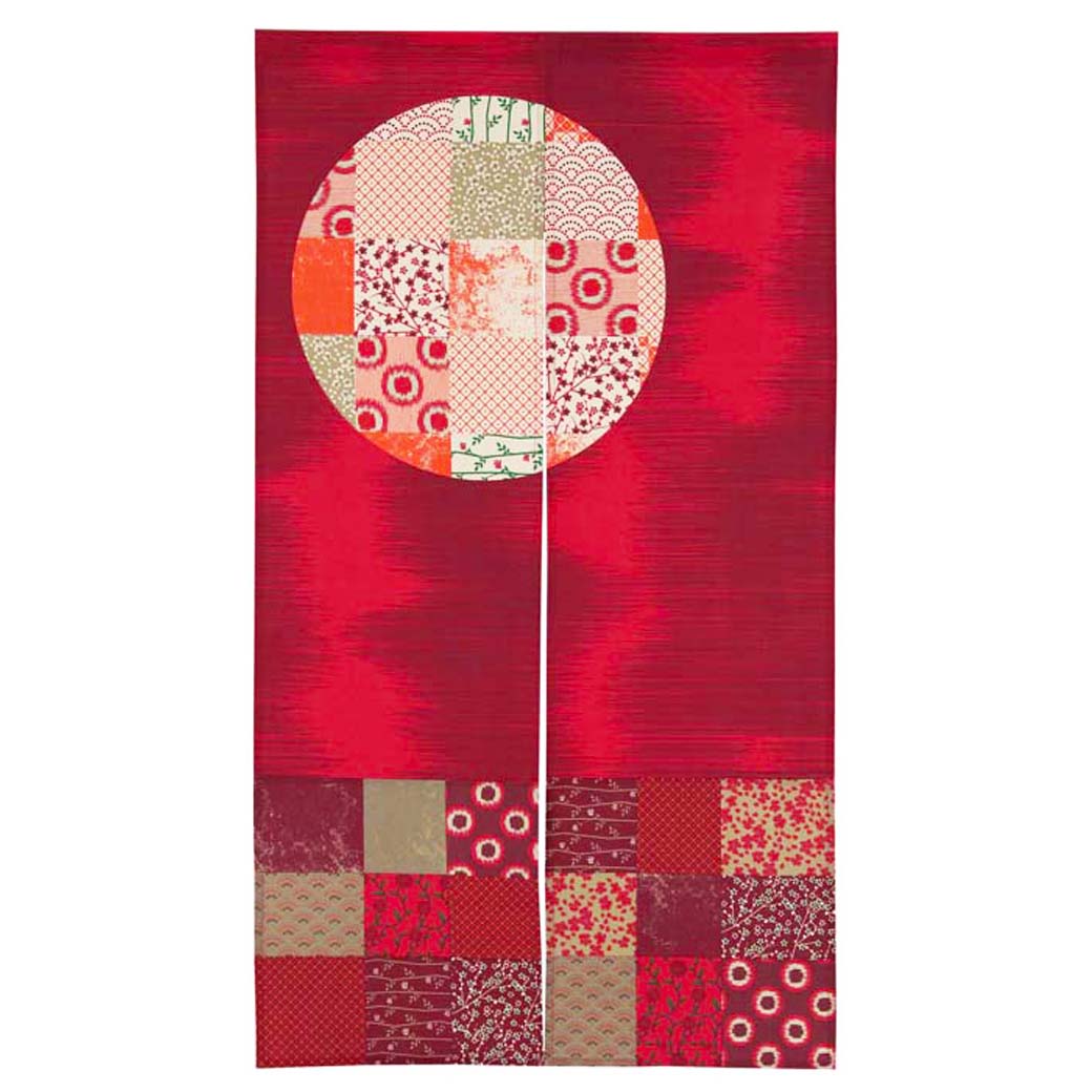 【 のれん あかり 赤 】 暖簾 カーテン パッチワーク風 まる 古典柄 パッチワーク柄 伝統和柄 日本柄 和柄 目隠しカーテン 仕切りカーテン 北欧風 おしゃれ お土産 海外 外国人 日本料理屋 間仕切り 寿司屋 ギフト プレゼント 留学 ホームステイ Textile world TOA