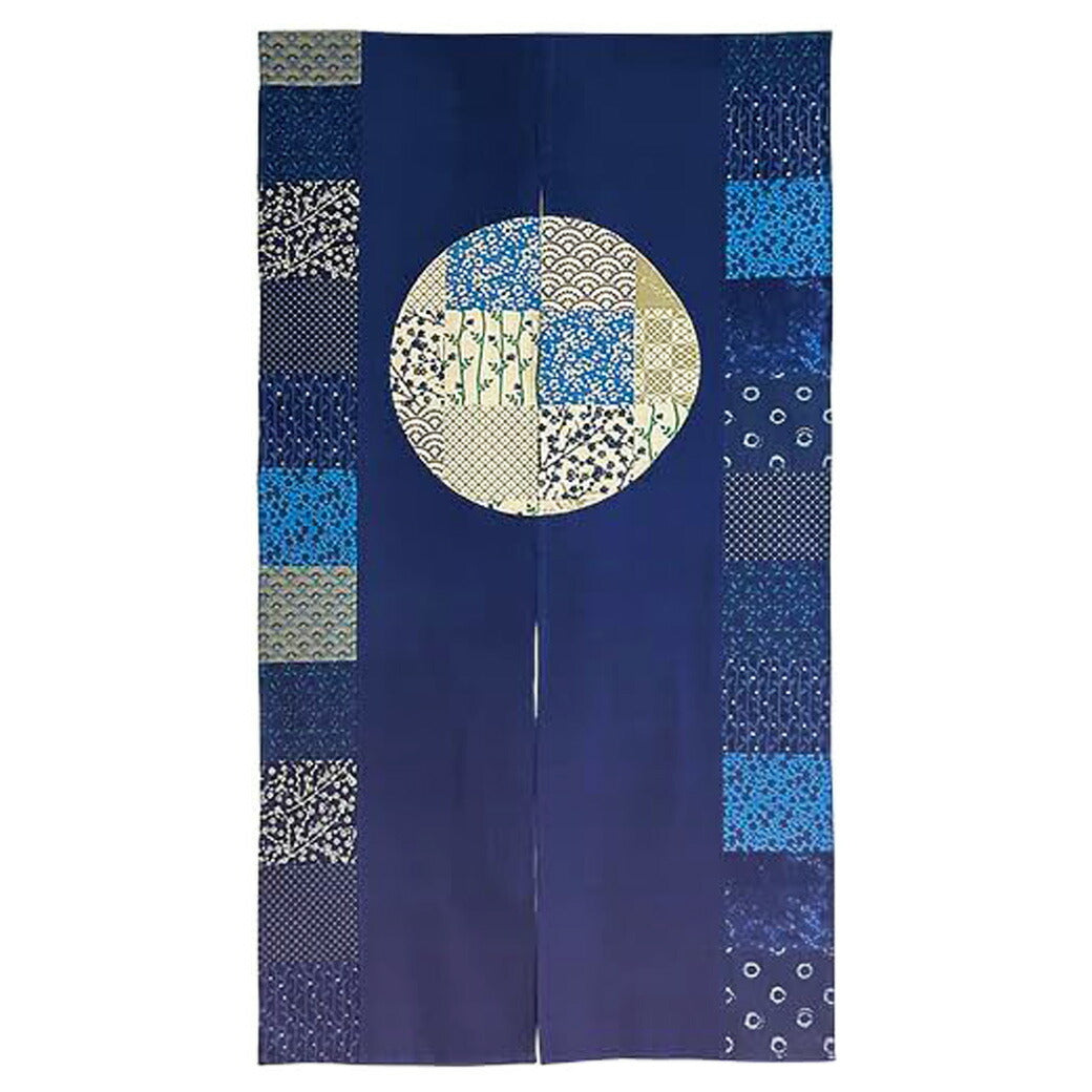 【 のれん あかり 青 】 暖簾 カーテン パッチワーク風 まる 古典柄 パッチワーク柄 伝統和柄 日本柄 和柄 目隠しカーテン 仕切りカーテン 北欧風 おしゃれ お土産 海外 外国人 日本料理屋 間仕切り 寿司屋 ギフト プレゼント 留学 ホームステイ Textile world TOA