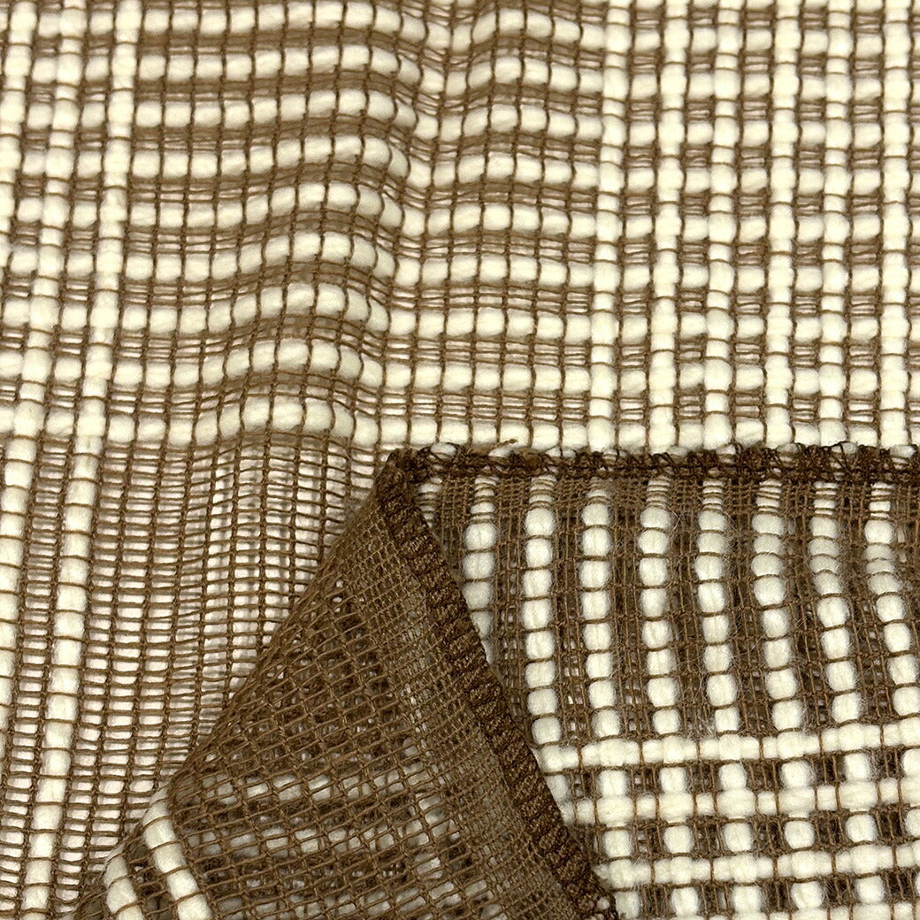 編み目で作られた格子模様に加え、太い糸がところどころ編み込まれており、触感と見た目にアクセントをプラス。