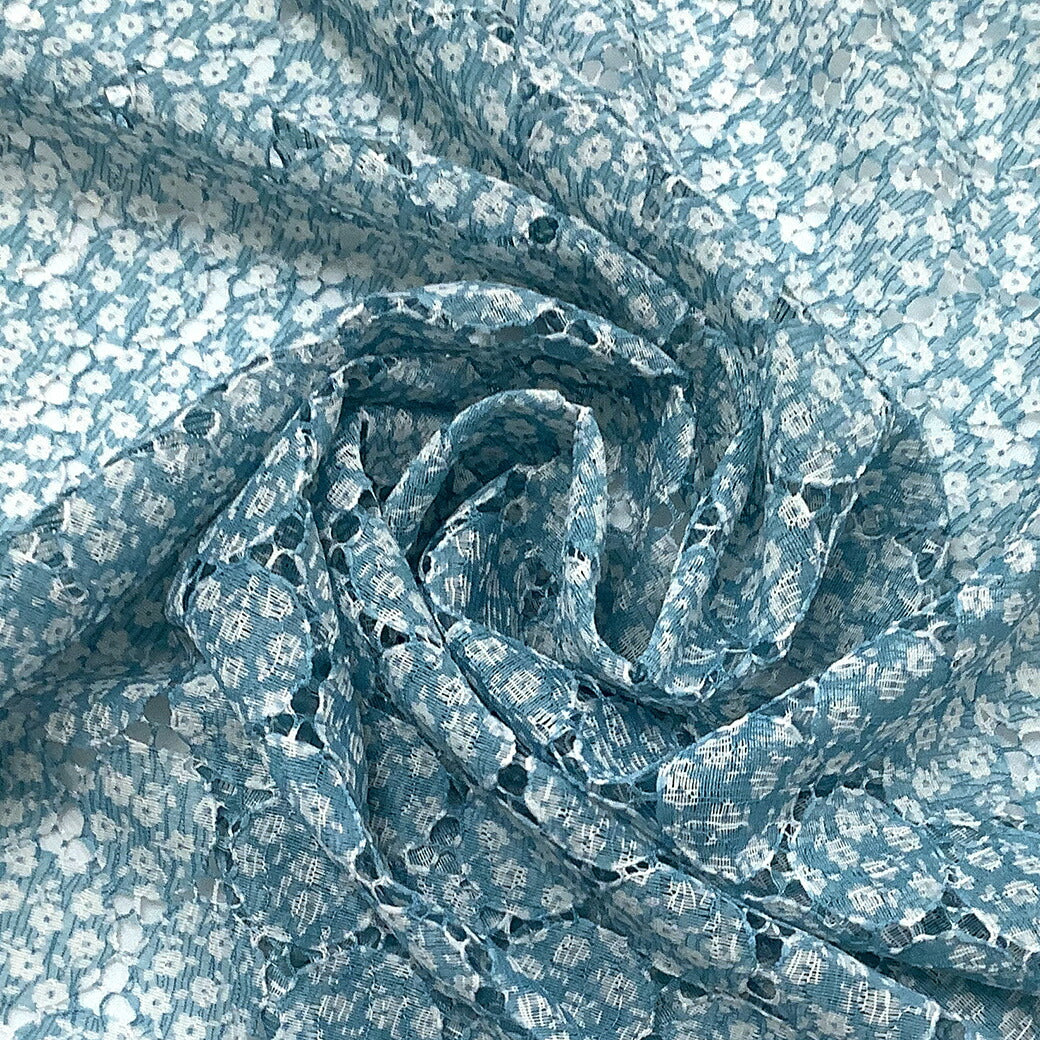 生地 【 花柄ラウンドレース スカイ 】 レース レース生地 花柄 ラウンドレース 刺繍 レース刺繍 小花柄 薔薇 カスミソウ 幾何学 ワンピーズ チュニック スカート カーテン ブライダル ウェディング コスプレ 半襟 ポリ