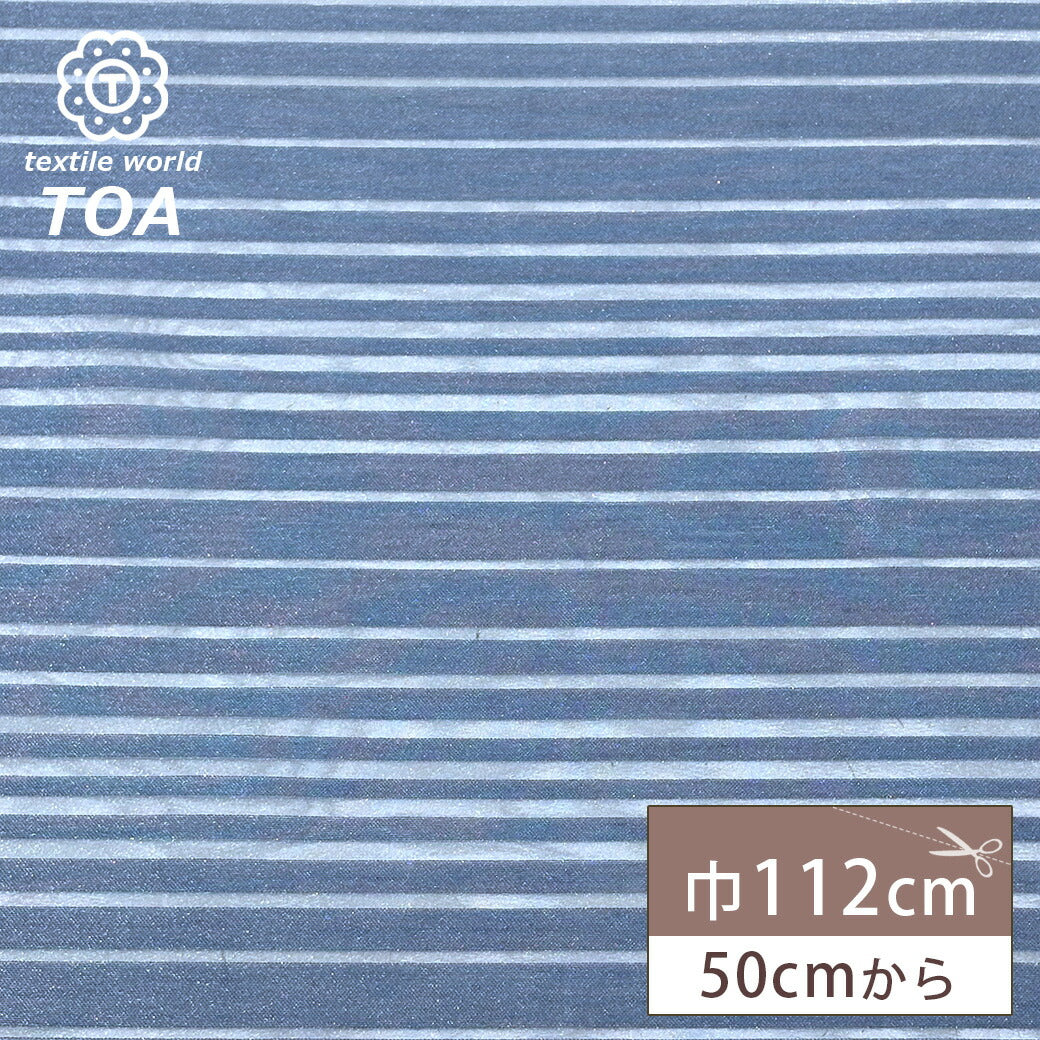 生地 【 ボーダーオパール スカイ 】 オパール加工 綿混生地 112cm巾 ボーダー 縞縞 透け感 ブラウス シャツ スカート ワンピース カーテン インテリア クッションカバー テーブルクロス ポーチ 小物 巾着 Text