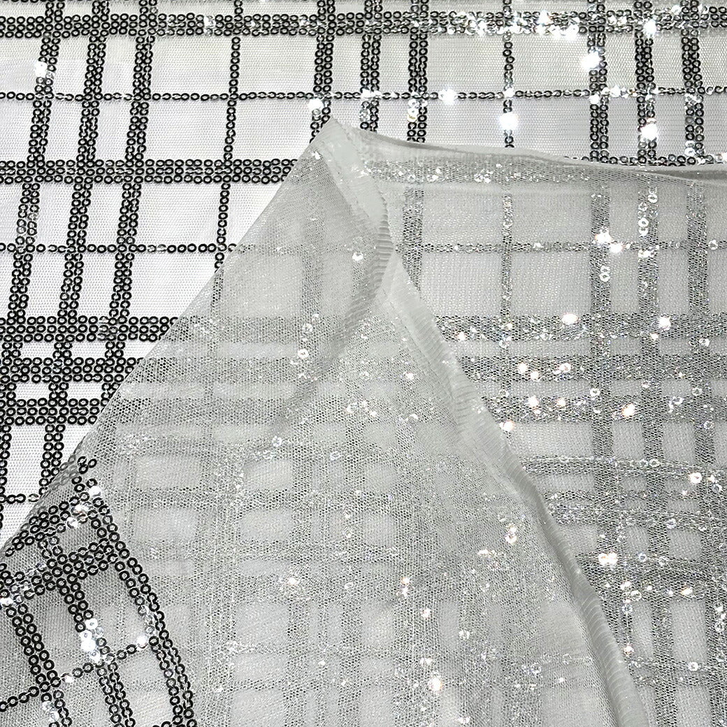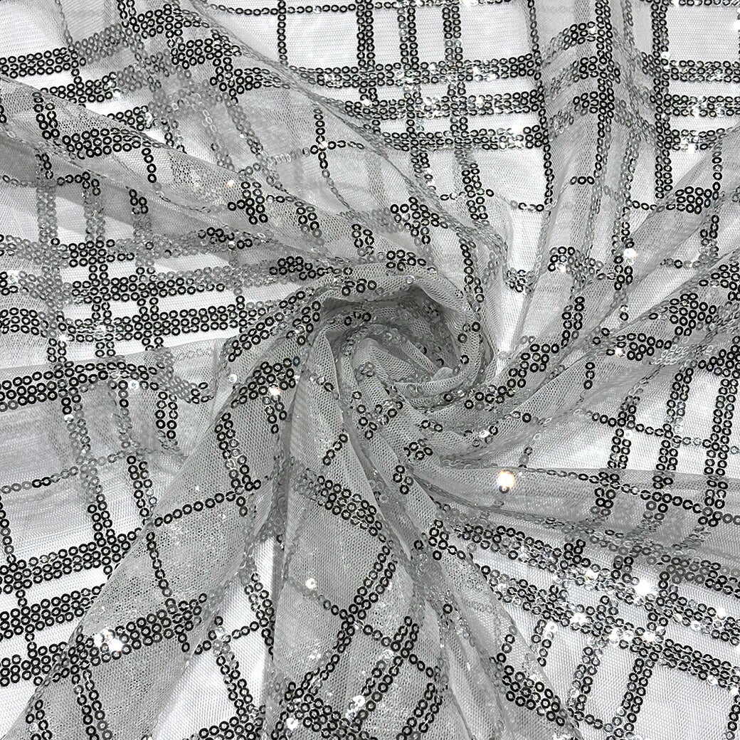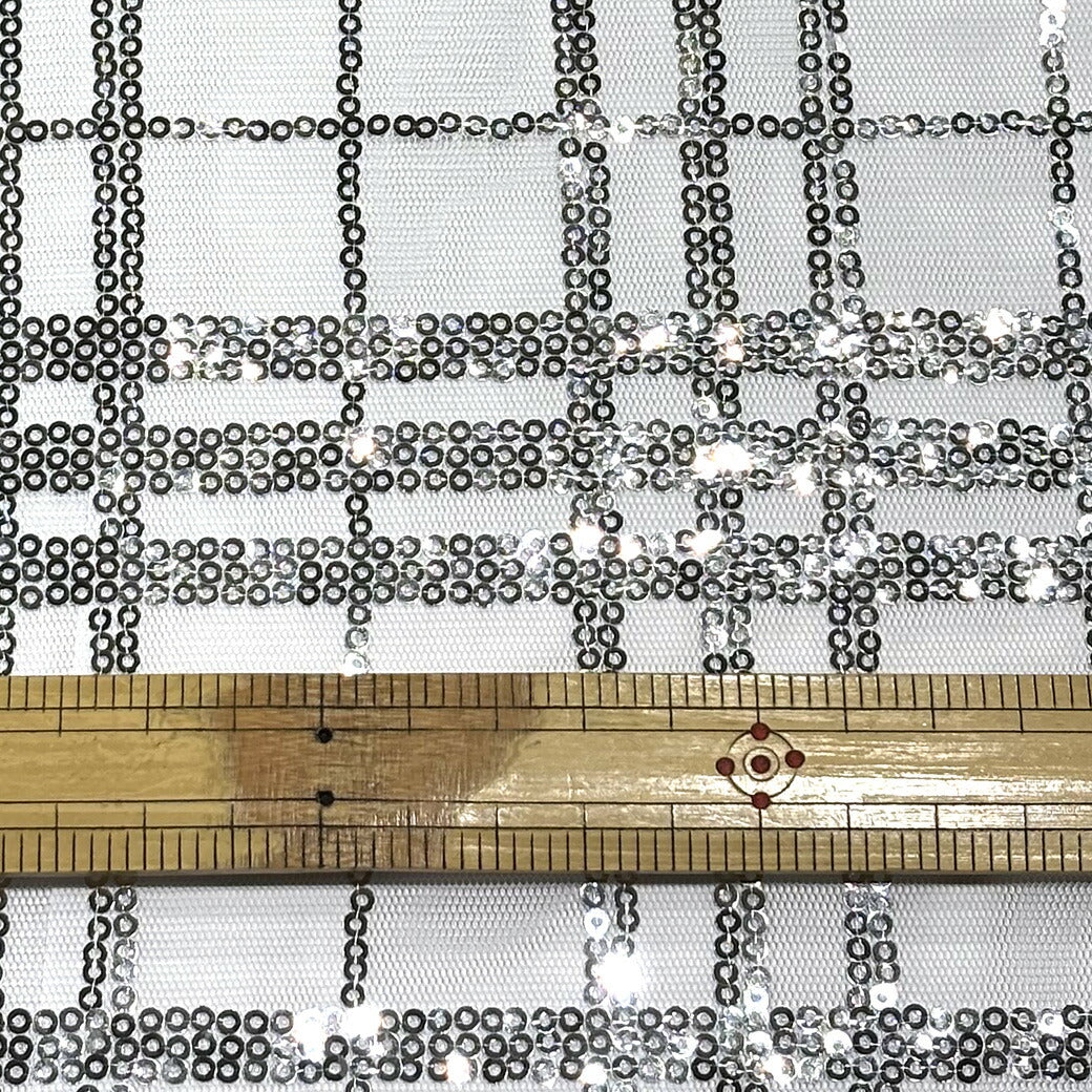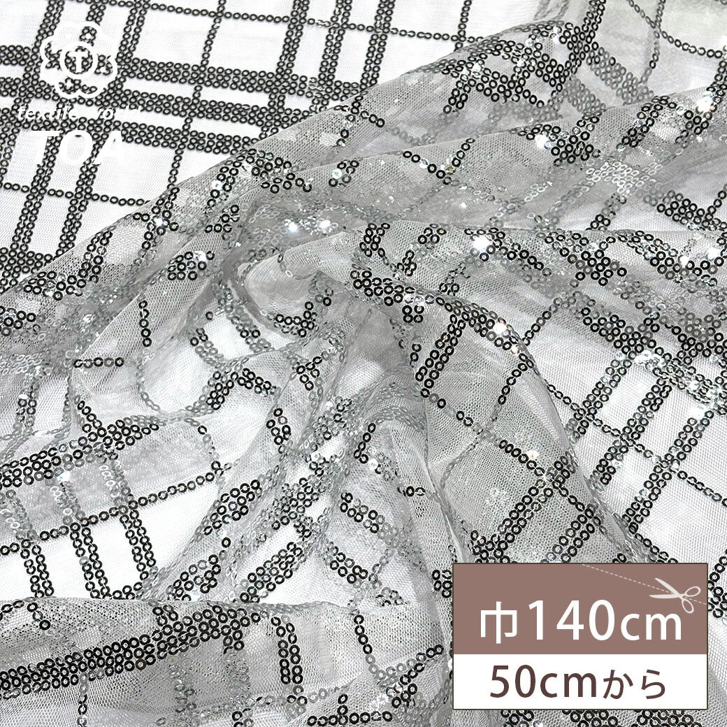 生地 【 スパンコールチェック シルバー 】 チュール生地 スパンコール 140cm巾 チェック 格子 シアー レース 衣装 コスプレ ダンス 舞台衣装 発表会 トップス スカート ドレス 洋服 服地 ウェディングベール コサ