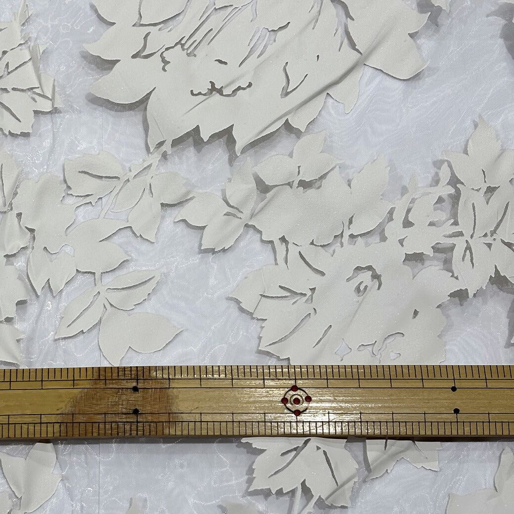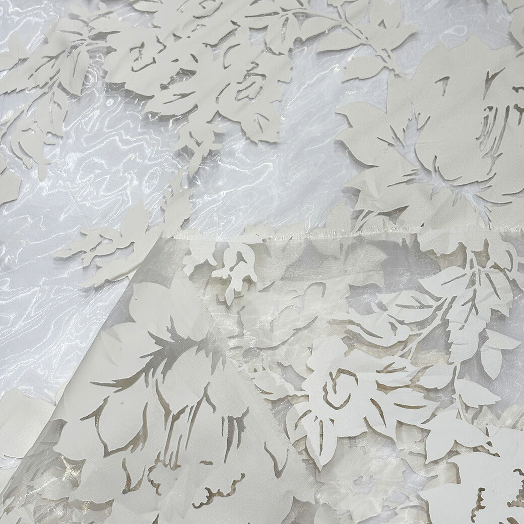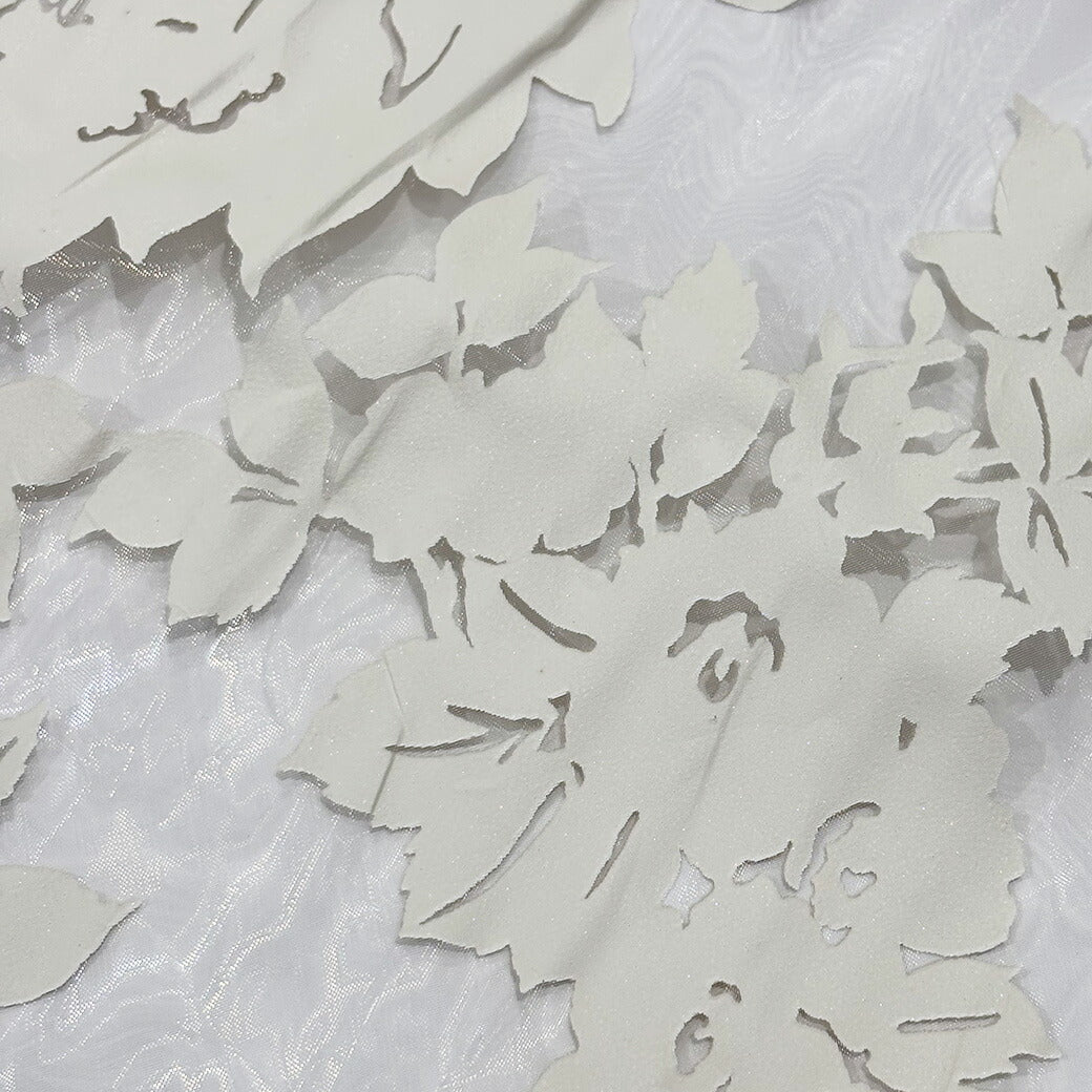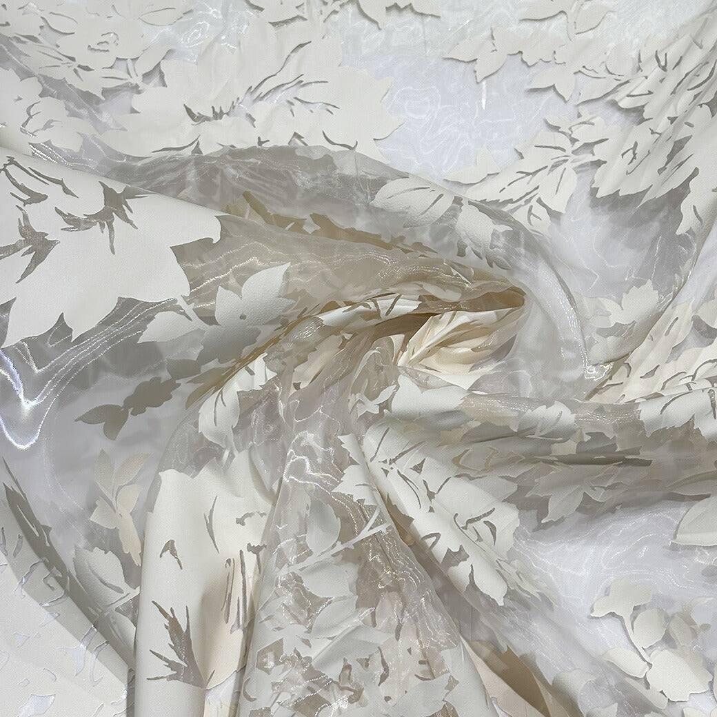 生地 【 花柄シアー オフ白 】 オーガンジー シアー生地 145cm巾 幅広 レース 透け感 花柄 大柄 ドレス ヴェール ウエディング ステージ衣装 衣装生地 コスプレ衣装 発表会 卒業制作 インテリア エレガント 光沢感
