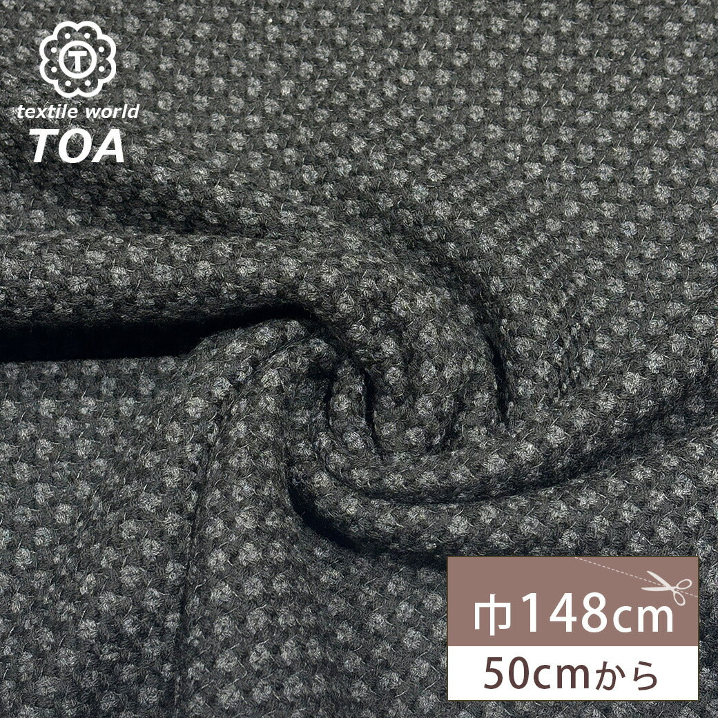 生地 【 ウールツイード 黒 】 ウール生地 冬生地 ツイード ツイード生地 ウール混 ウール素材 ウール 羊 厚手 無地 秋冬 ジャケット スカート セットアップ フォーマル スーツ コート ジレ バッグ ワンピース ポーチ インテリア 卒園式 入園式 入学式 Textile World TOA