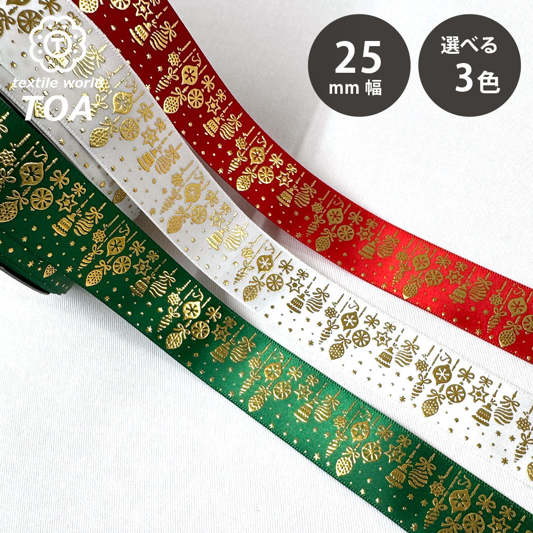 | 商品名 | 【 クリスマスサテンリボン 25mm 3色 】 |