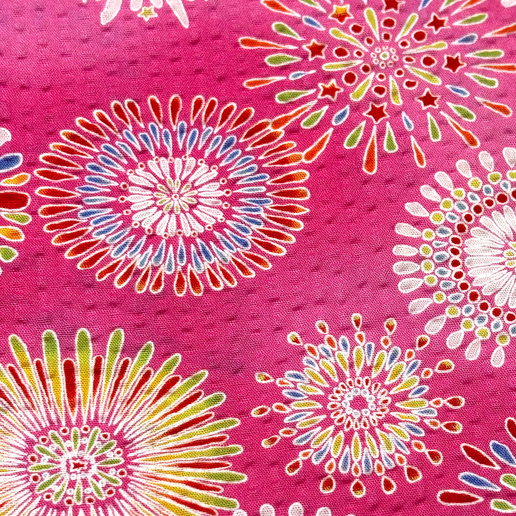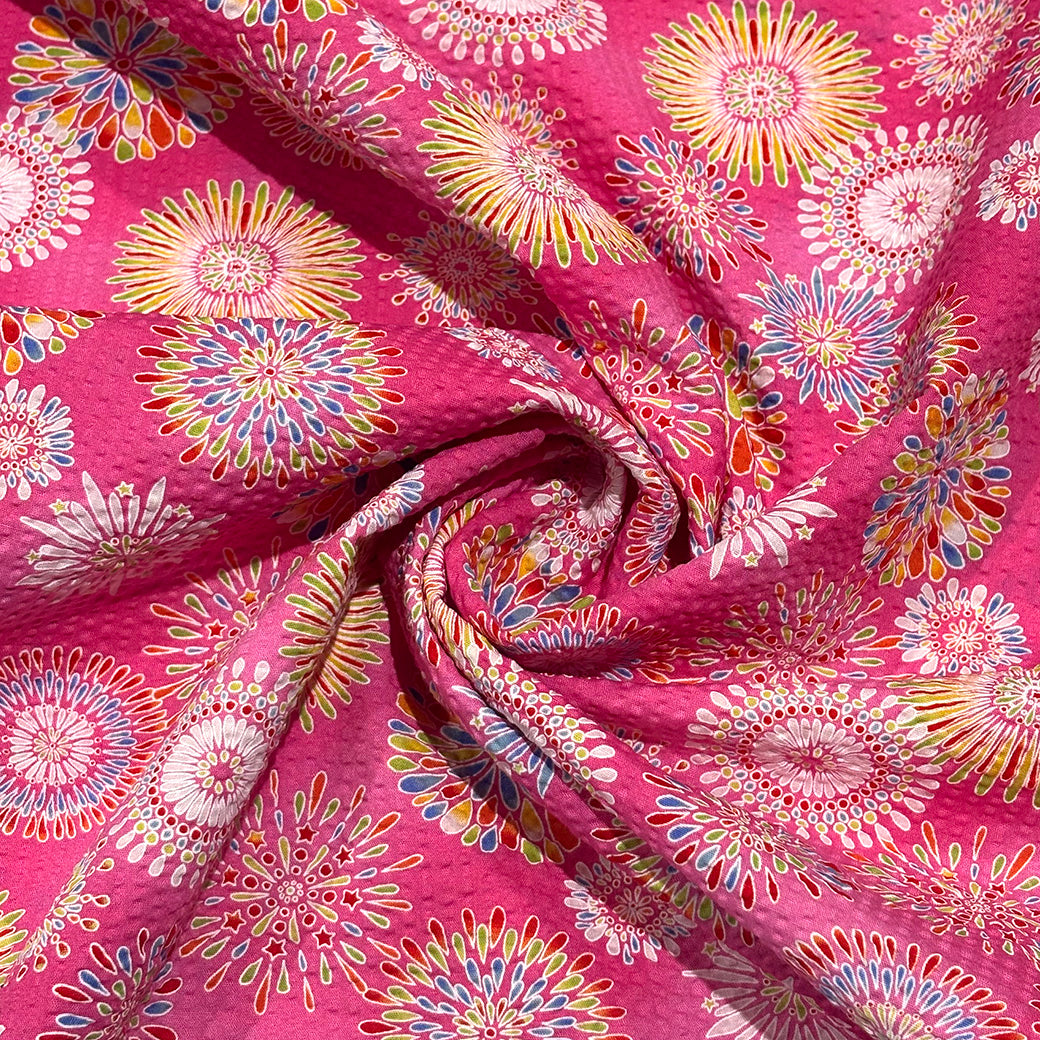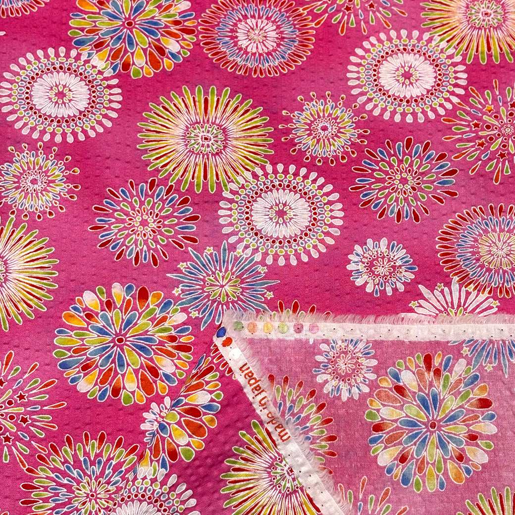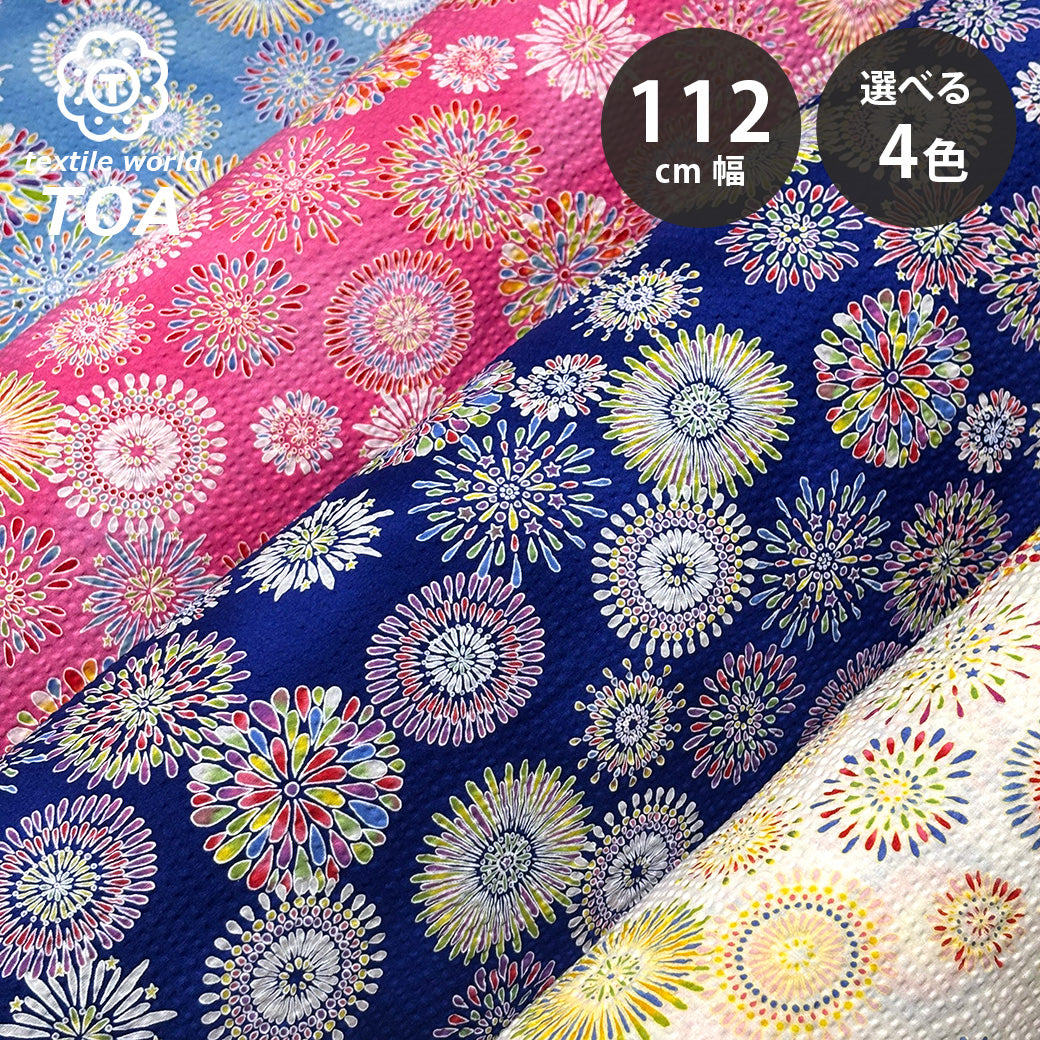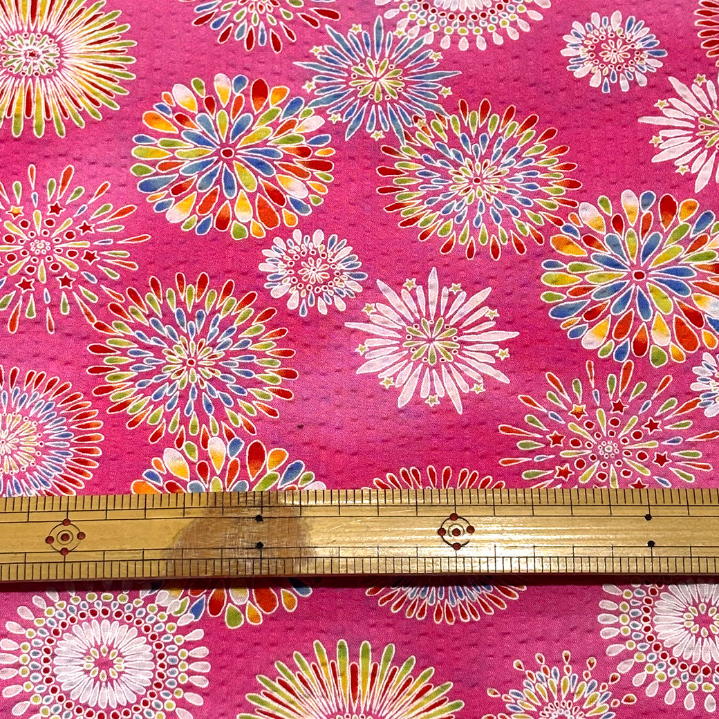 生地 【 リップル 花火 ピンク】 112cm巾 リップル生地 サッカー生地