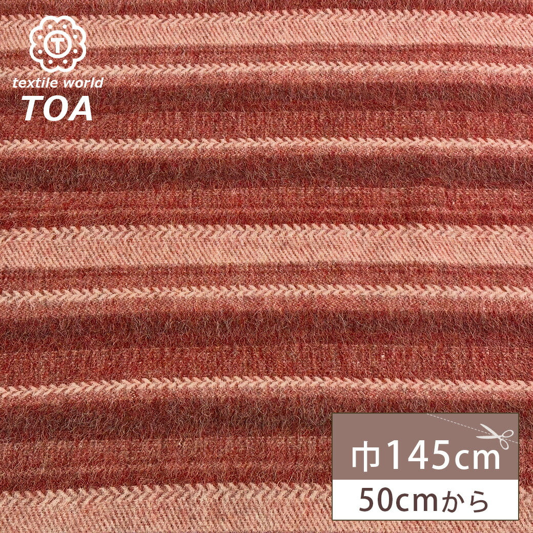 生地 【 民族ボーダー エンジ 】 ウール ウール生地 ボーダー 縞々 縦縞 しましま 起毛生地 羊毛 暖かい 冬生地 秋生地 厚手 厚い インテリア スカート パンツ ワンピース ひざ掛け ブランケット ポンチョ 手袋 グロ