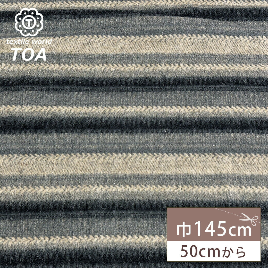 生地 【 民族ボーダー モノグラム 】 ウール ウール生地 ボーダー 縞々 縦縞 しましま 起毛生地 羊毛 暖かい 冬生地 秋生地 厚手 厚い インテリア スカート パンツ ワンピース ひざ掛け ブランケット ポンチョ 手袋