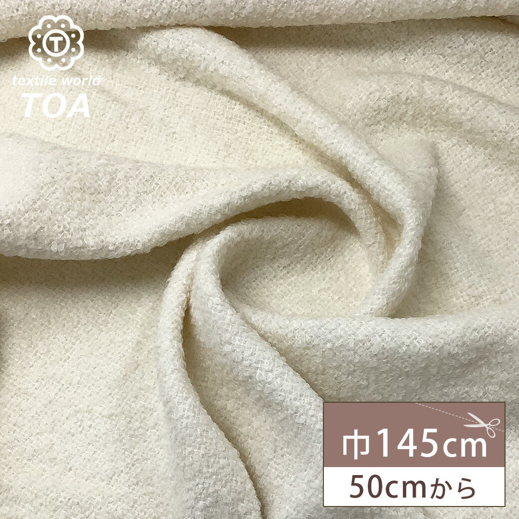 生地 【 ウールループリング オフホワイト 】 ウール生地 冬生地 ニット生地 ニット ウール混 ウール素材 ウール ぽこぽこ 厚手 無地 秋冬 アウター カーディガン ベスト インテリア クッションカバー セーター ワンピー