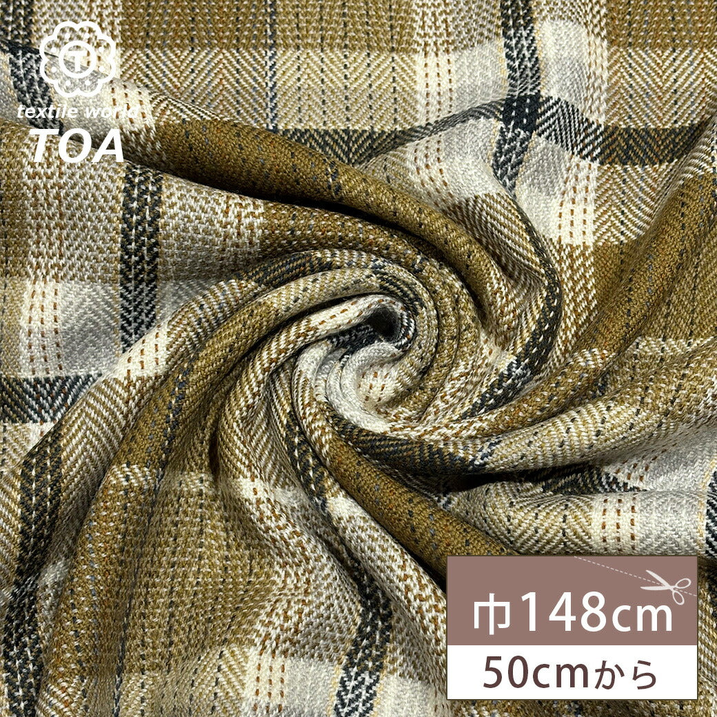 生地 【 大柄格子チェック モカ 】 チェック生地 チェック柄 チェック ウール ウール生地 ウール混 マドラスチェック 秋冬生地 冬生地 マフラー スヌード ストール ブランケット ひざ掛け 肩掛け スカート コート ジャケット パンツ 暖かい あたたかい Textile World TOA
