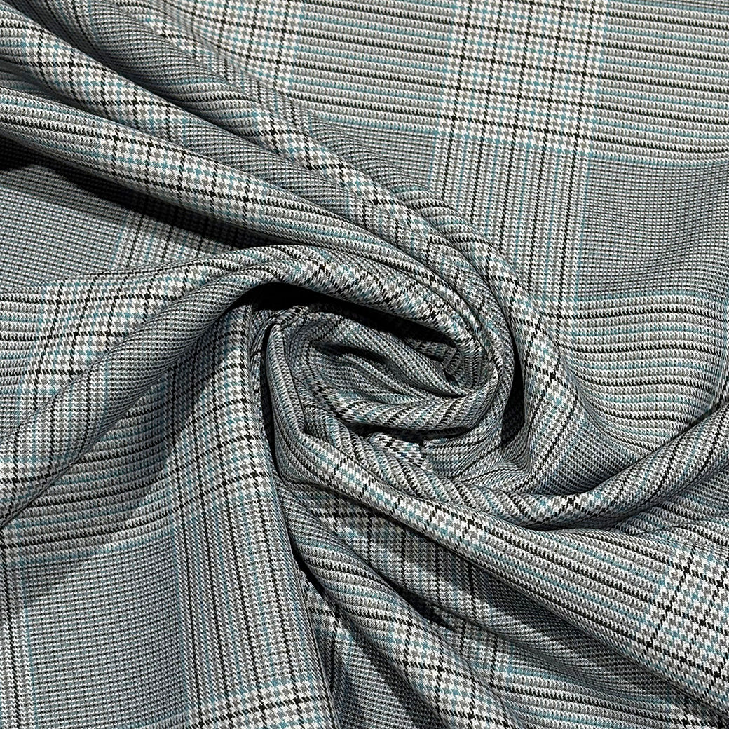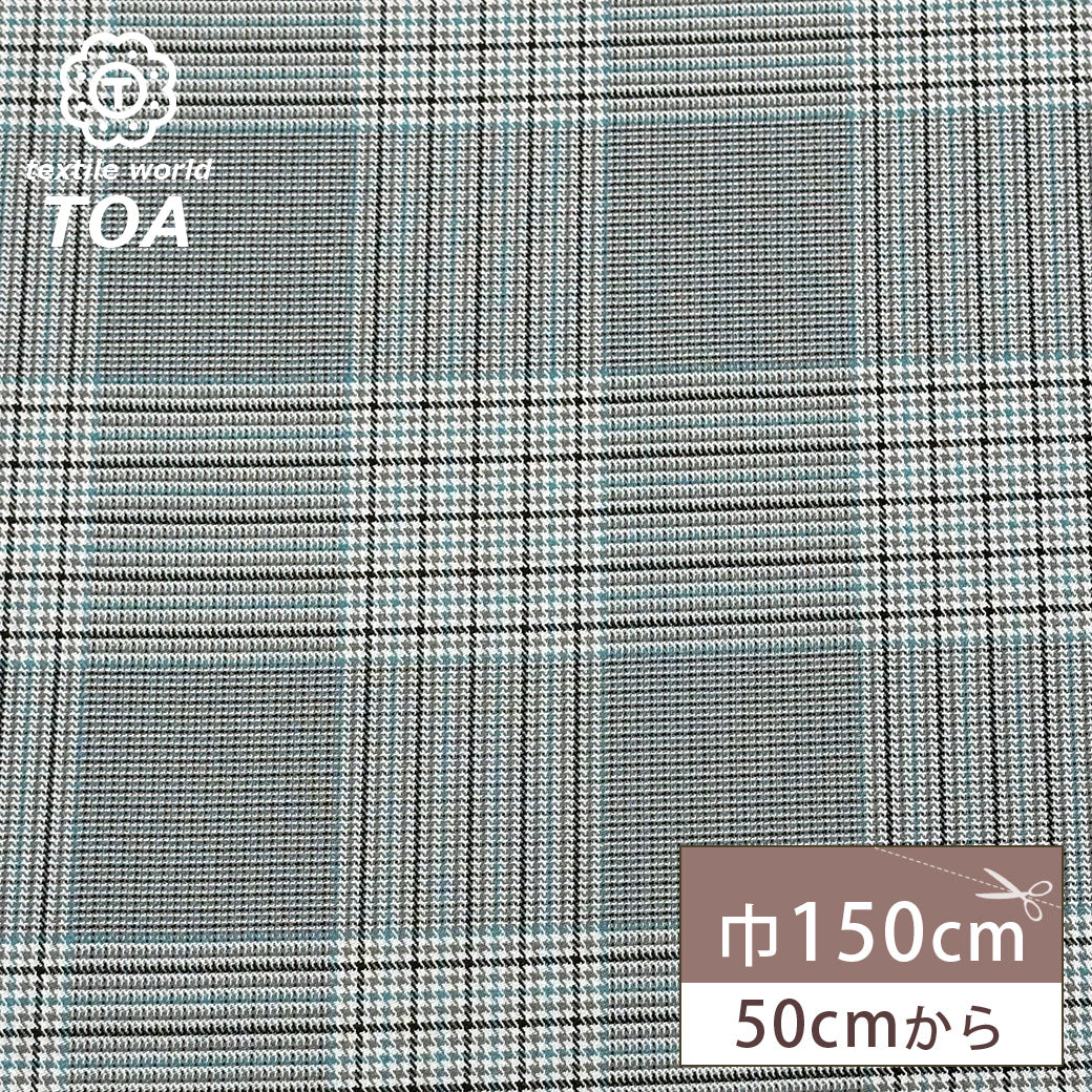 生地 【 梳毛ウール チェック ミントグレー 】 ウール生地 紡毛ウール ポリエステル チェック 150cm巾 幅広
