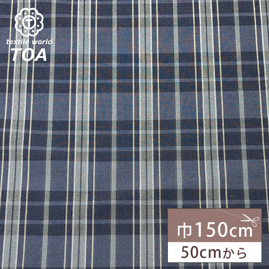 生地 【 梳毛ウール タータン チャコール紺黄 】 ウール生地 紡毛ウール チェック 150cm巾 幅広