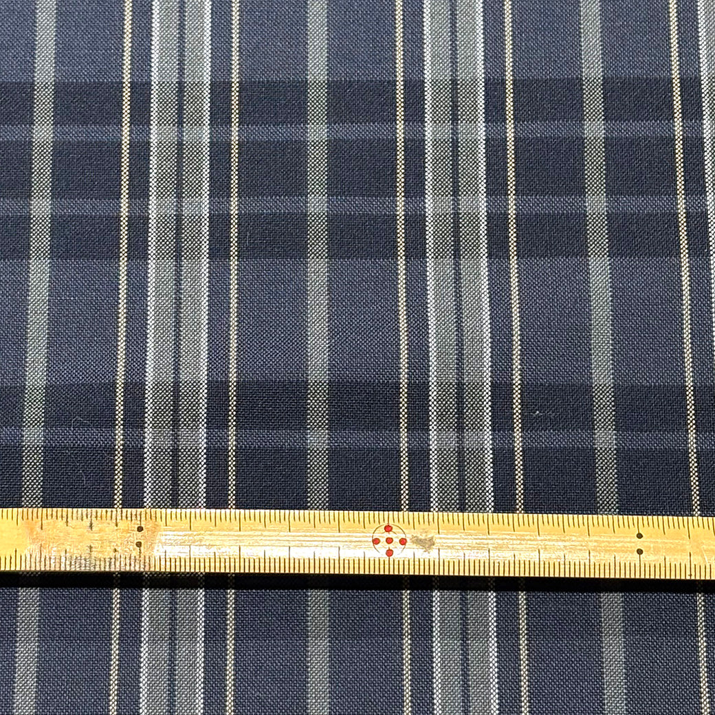 チェック柄が映える、すっきりとした梳毛タイプの生地。